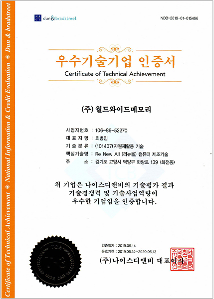 ㈜월드와이드메모리는 IT 기기의 재사용을 통해 친환경적인 자원순환을 실천하고 있습니다.